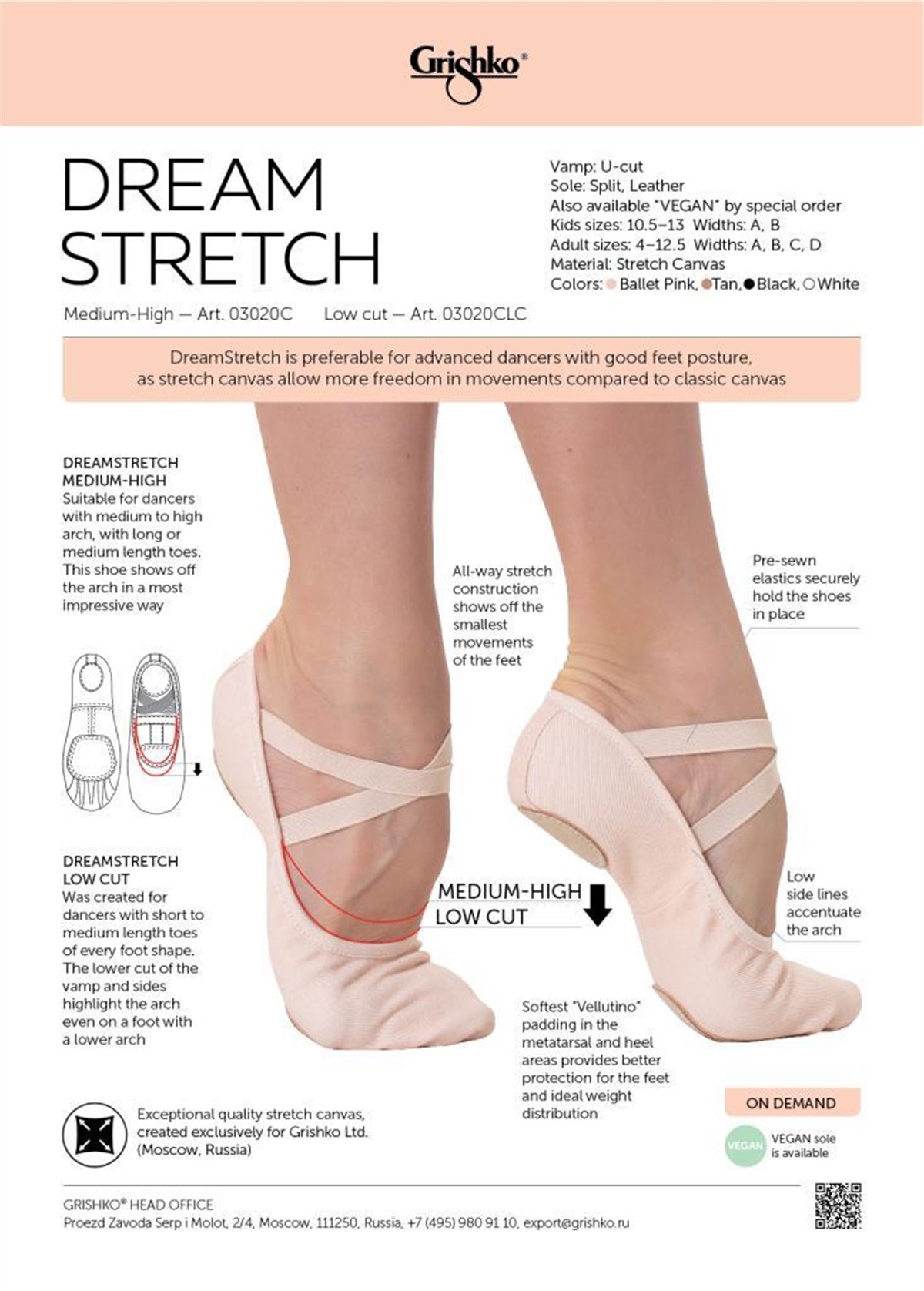Grishko DREAM STRETCH Split Sole Low Cut Bale Patiği Pembe (03020CLC)