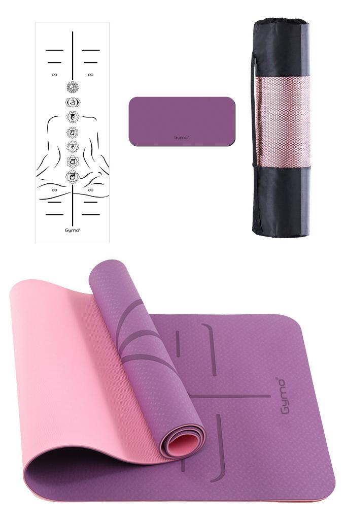 Gymo Sembol Hizalamalı 6mm TPE Yoga Matı Pilates Minderi Diz Dirsek Koruyucu Matlı Set Mürdüm