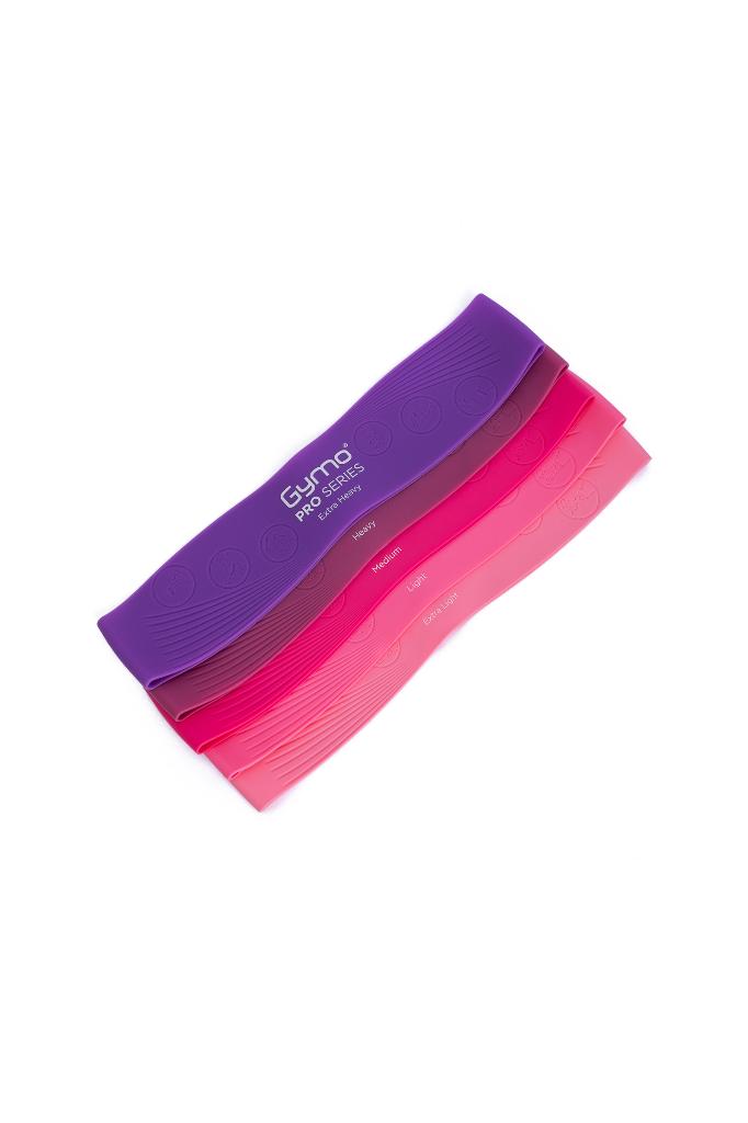 Gymo Pro Series Çantalı Direnç Bandı Fitness Pilates Esnetme Lastiği 5'li Set Silikon Mor