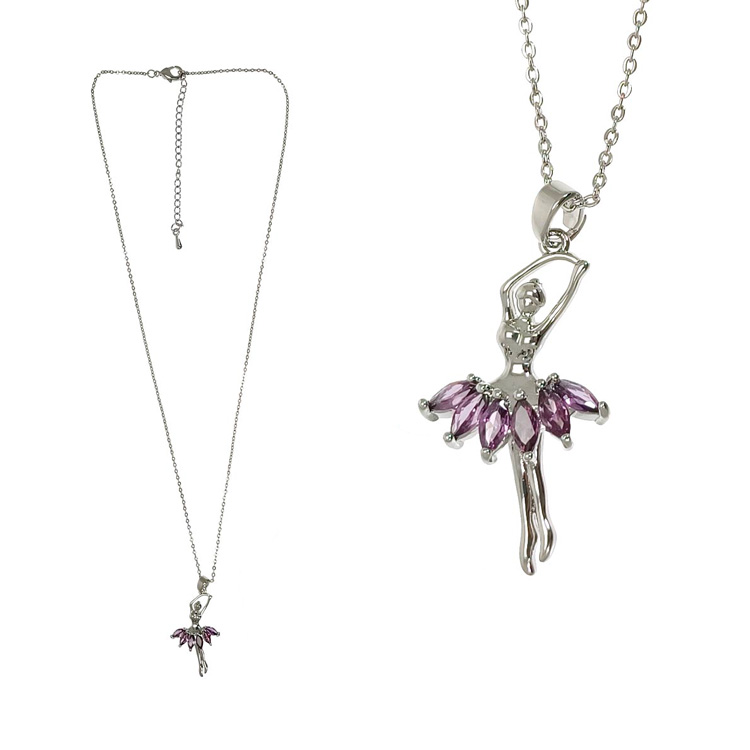 Taşlı Balerin Kolye Lila GRDB32311-1-3
